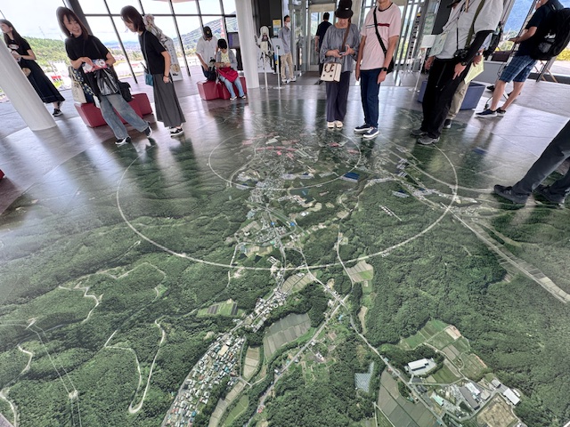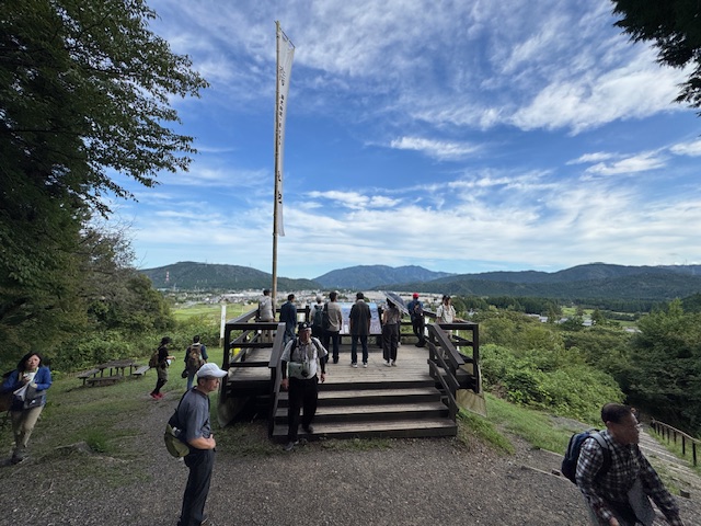 続いて訪れたのが関ヶ原古戦場記念館です。こちらではシアターで合戦の模様を体験し、関ヶ原古戦場や東西両軍の陣場を見渡せる屋上展望室で実際の距離感などを確認しました。記念館での見学の後は再びバスに乗車し、井伊直政・松平忠吉の陣跡と東首塚を見学、さらにバスで移動し、大谷吉継の陣を見学。こちらでは関ケ原合戦の勝敗を決定づけた小早川秀秋の布陣する松尾山を正面に見ることができ、大谷隊の緊張感を感じることができました。
