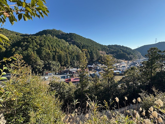 対岸の栄泉寺側から三倉城と街並みを見る